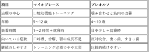 どちらが優れているというよりも、お子さまの状態によって“適切な装置”が変わります。口呼吸・舌癖がある場合はマイオブレース、噛み合わせが問題の場合はプレオルソが向いています。